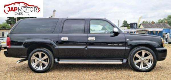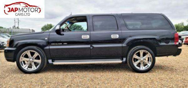 CADILLAC ESCALADE 6.0 V8 VORTEX 4WD ESV LONG WHEEL BASE AUTOMATIC LHD (LEFT HAND DRIVE ) ,LEATHER INTERIOR, ELECTRIC WINDOWS ,ELECTRIC ADJUSTABLE & FOLDING SIDE MIRRORS ,REMOTE CENTRAL LOCKING, CRUISE CONTROL ,CLIMATE CONTROL ,REVERSE CAMERA FLIP DOWN DVD PLAYER ALLOYS FOLDING SEATS SIDE STEPS ROOF BARS PLUS MUCH MORE. **THE CAR COMES WITH FULL UK REGISTRATION & 1 YEAR MOT PARTS & LABOUR. **THEY COME WITH A 3 MONTH WARRANTY ON THE ENGINE AND GEARBOX.**AS THESE AMERICAN CARS ARE IMPORTED FROM JAPAN SO YEAR OF REGISTRATION WILL BE DIFFERENT FROM YEAR OF MANUFACTURE,IN UK THIS CAR WILL BE REGISTERED ON 2008 PLATE. **WE DO TAKE PX.** WE DO ACCEPT ALL MAJOR CREDIT AND DEBIT CARDS DELIVERY CAN BE ARRANGED. [Phone number removed]