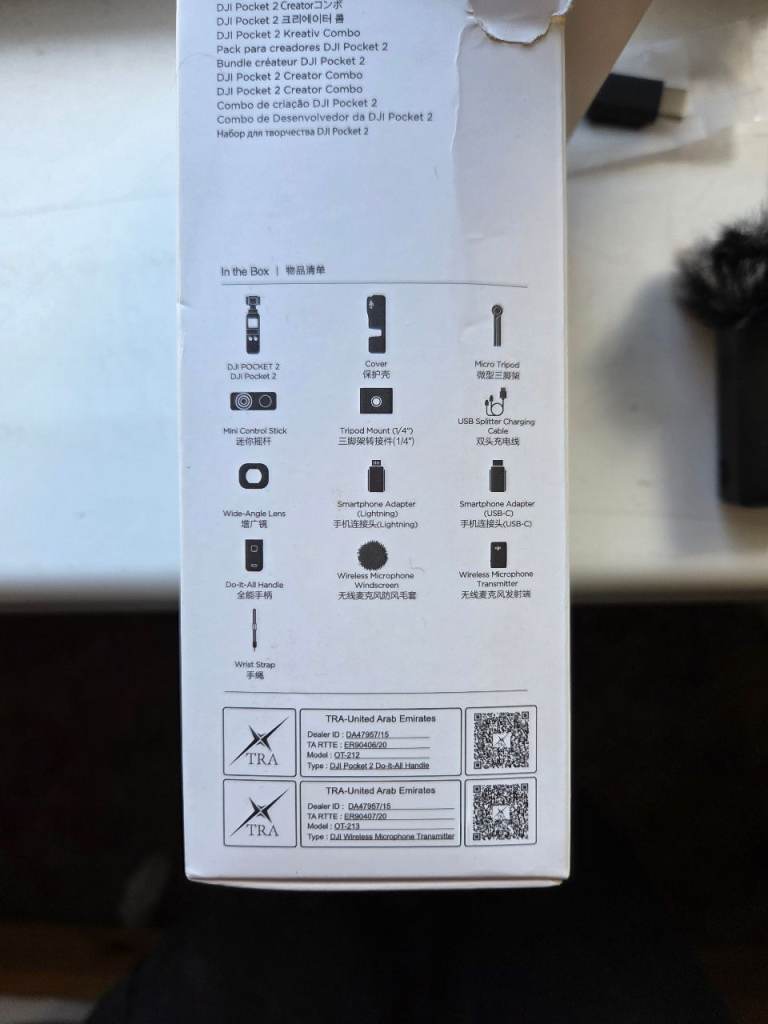 Dji pocket 2 creater combo with box. This has gone through a house move so the box is damaged. The actual product has only been used for a short period a couple times so it is in excellent condition. I am missing the wrist strap and USB splitter cable but everything else is there. Also comes with a 256g memory card worth £50