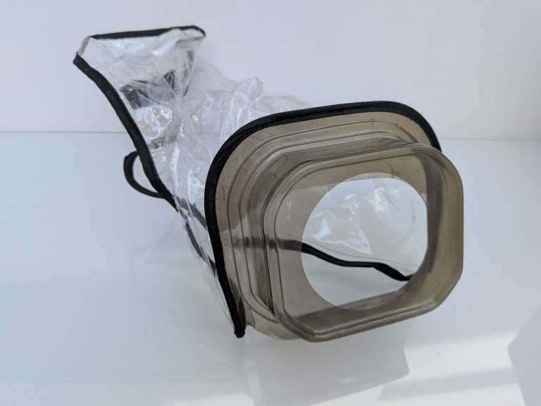 plus Panasonic telephoto lens and rain cover