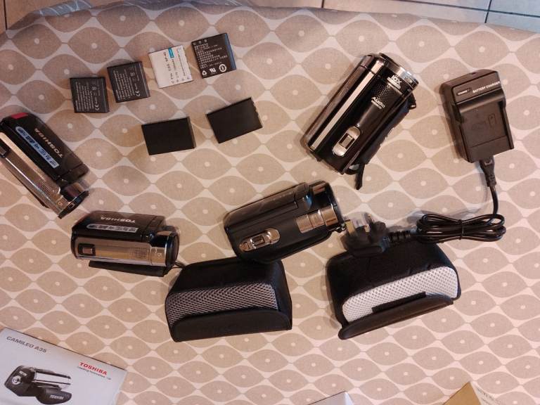 I have four working camcorders for sale, all are complete and come with batteries and chargers, instructions etc.(no SD cards)
