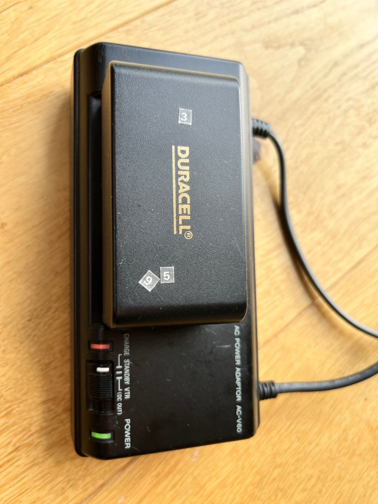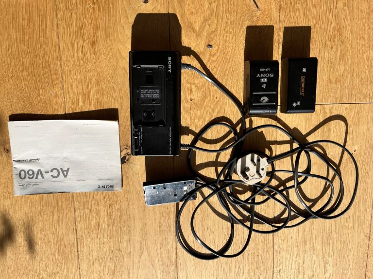 Charger will act as battery charger or has a connection to direct power a Sony video 8 camcorder.