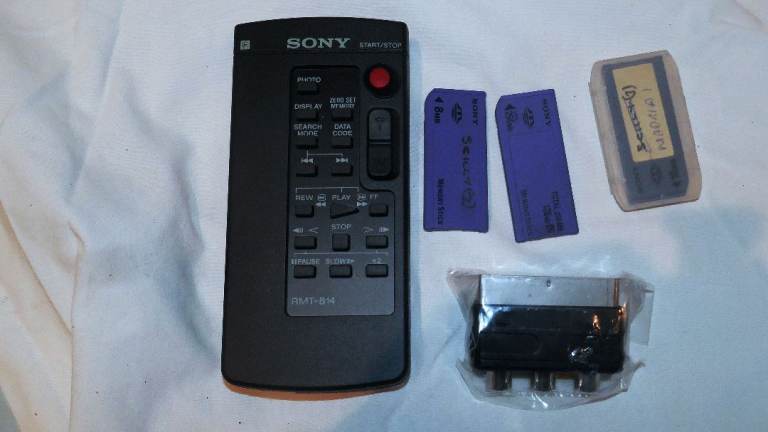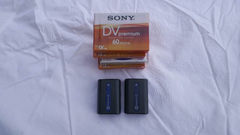 Unit comes with 3 batteries, remote control, battery charger, 3 memory cards,4 unused dv tapes, carry case and lens cap.
