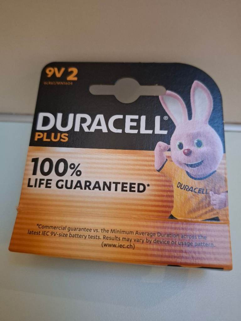 9V Duracell Plus battery - new and unused. Just purchased packet of 2 but only needed one. Expiry date Feb 2030.