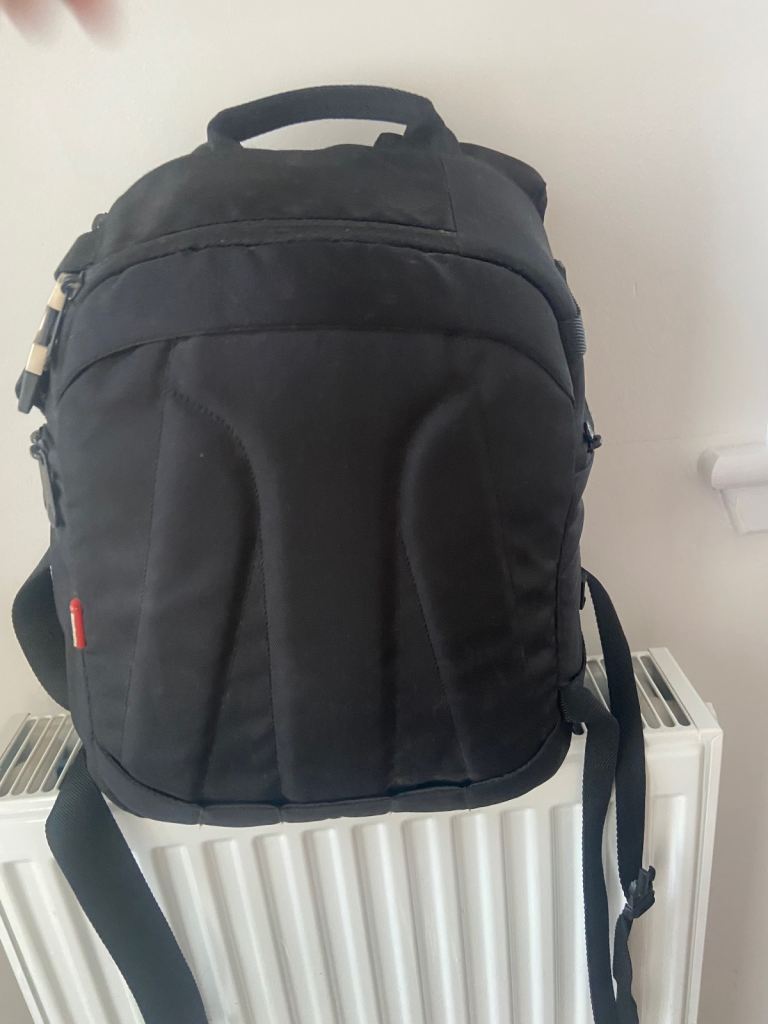 Fits 1 full-frame camera with attached standard zoom lens (24-70mm) plus 2-3 additional accessories.