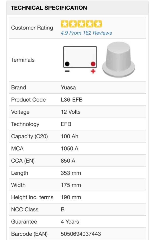 Posting for 3+ years✅12V Leisure Marine Recreation Caravan Boat Motorhome Battery 100Ah Yuasa 850A YBX Active L36-EFB🔋