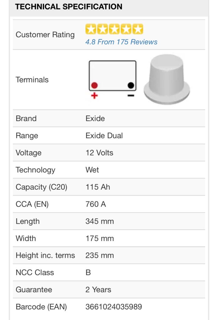 Posting for 3+ years✅12V Leisure Marine Recreation Caravan Boat Motorhome Battery 115Ah 760A Exide🔋
