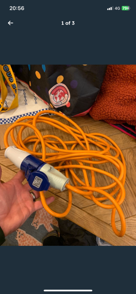 Hook up cable for plugging in at camp sites to connect up caravans/motorhomes. Hardly used. Sell for £7