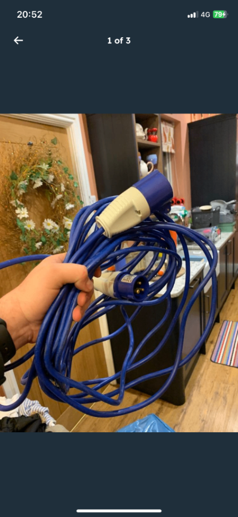 15m heavy duty hook up for plugging in at camp sites to hook up electric to caravans/motorhomes. Bargain £10