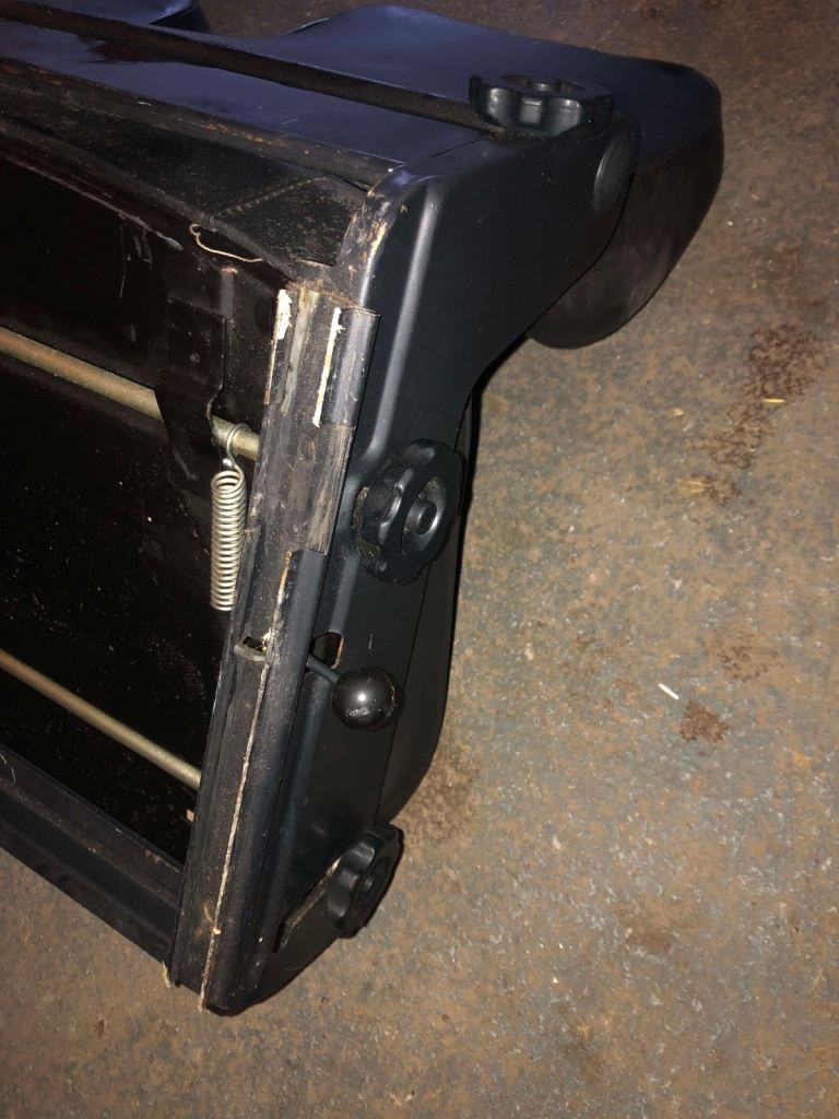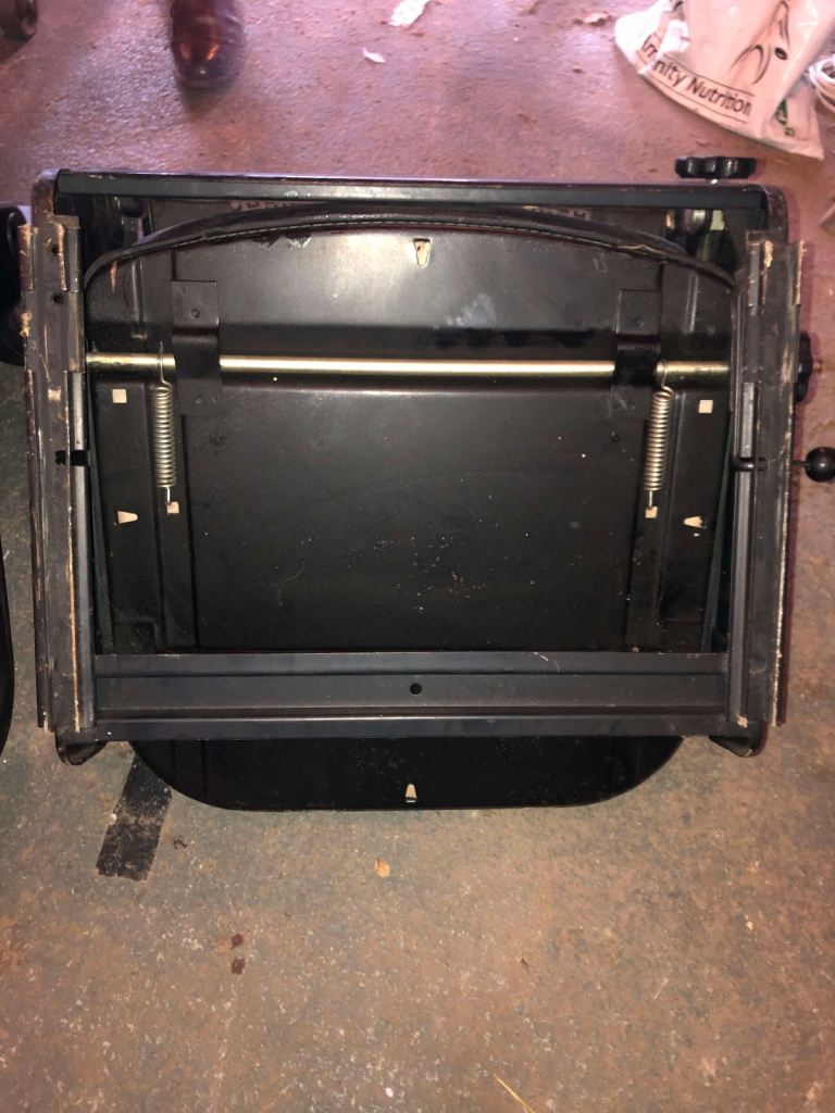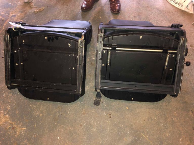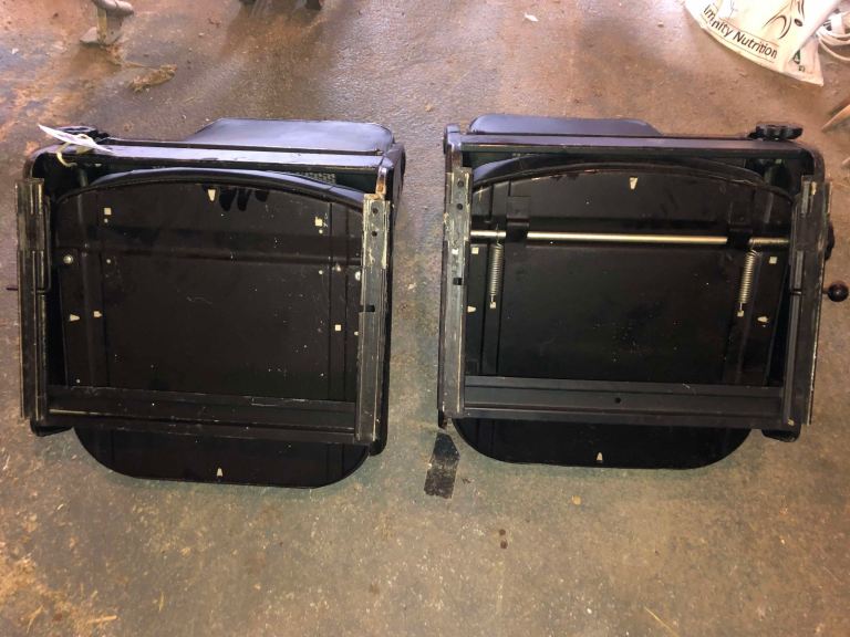 These are vintage seats with obvious signs of staining to the covers. Spring/rod missing to underside of one chair.