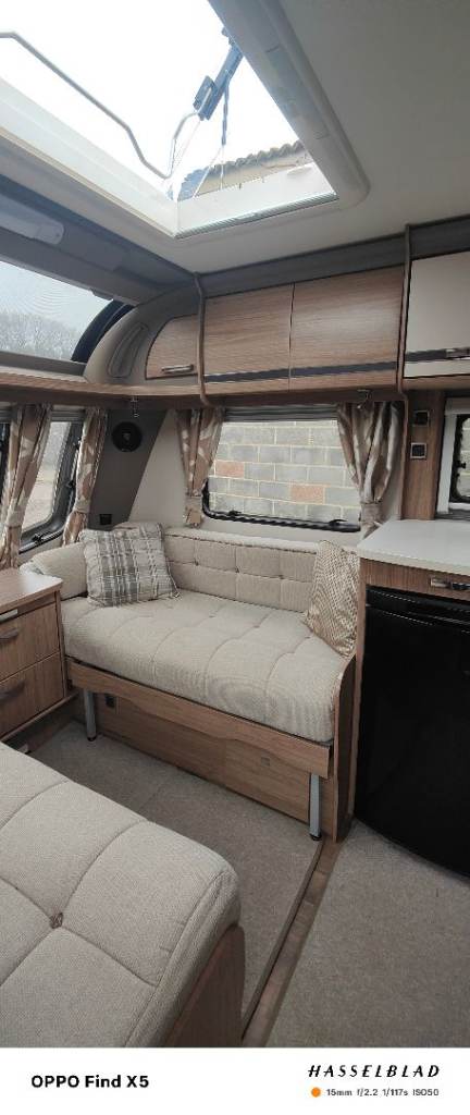Fixed island bed, end bedroom, mid bathroom, solar roof panels, Alde central heating system, microwave, fridge freezer, TV, fly screens, gas BBQ hook up point, removable fitted carpets, motor mover, hitch lock, wheel lock, alloy wheels, 2 brand new tyres(never been used) new leisure battery, aqua roller and waste water barrels..