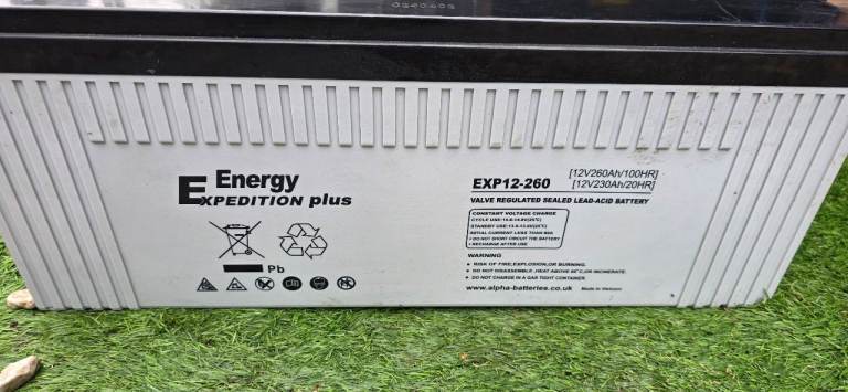 Expedition 260ah AGM lesuire battery, bought for a camper project but never used, the car battery is just to give ypu an idea of the size of the lesuire battery, its very big, would suit camper or solar off grid set up. Cost £350 about 8 months ago so a bargain at £190. Collect from borrowash de72
