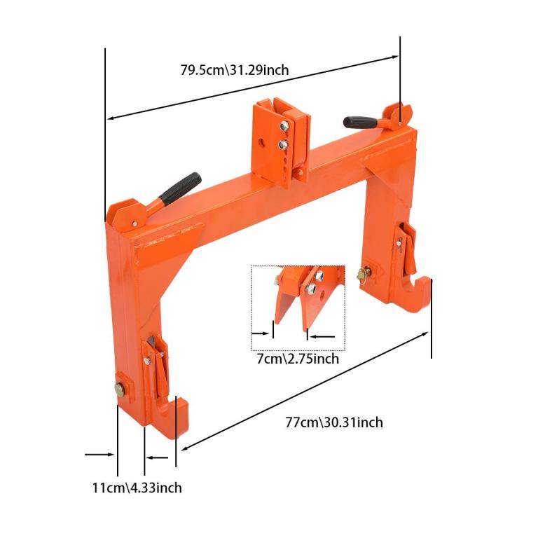 3 Point Quick Hitch 3000 lbs Adaptation to Category 1 & 2 Tractor Attachments