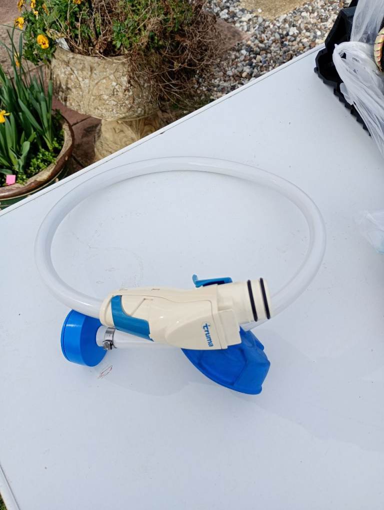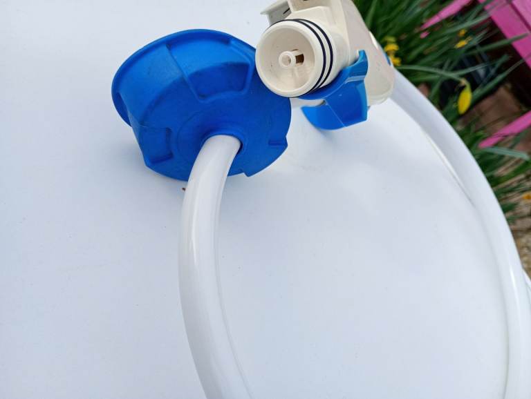 40 litre Aquaroll complete with handle, water pump and extended hose connector.