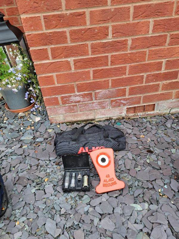 Alco lock excellent condiction. With all keys and codes, bag and box etc. Only selling due to selling of caravan £90 ono