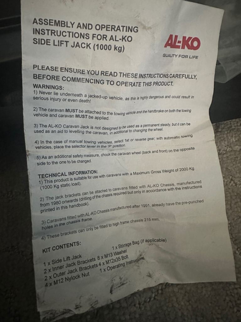 Alko side wind jack for caravan or any vehicle with Alko chassis new in bag never been used pickup Peebles area £25