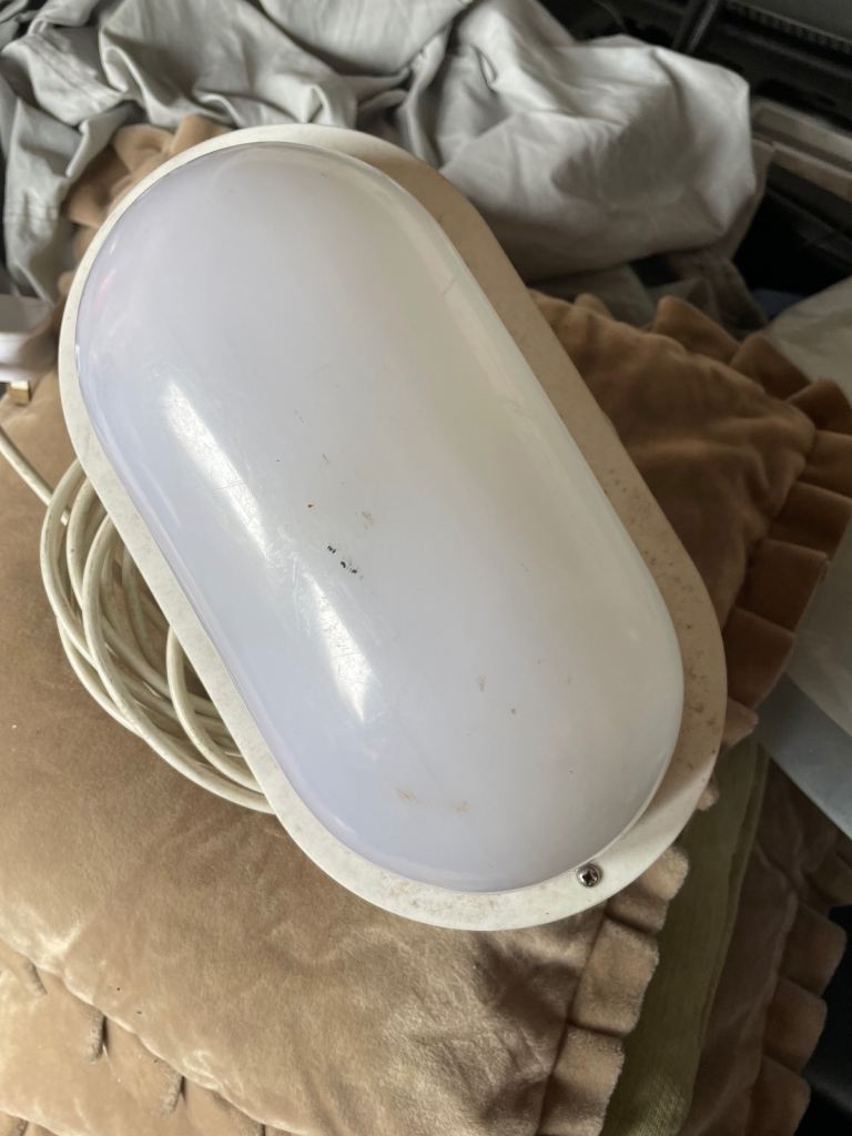 240v caravan awning light. On off switch. Long cable. Clips to metal awning tube. In very good condition. Collection from North Walsham. Bargain at £10