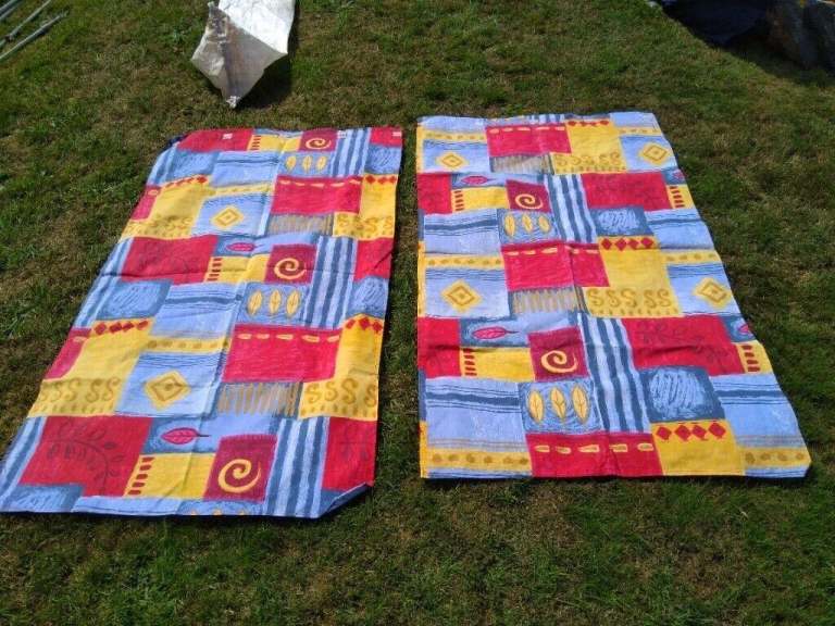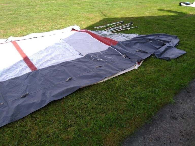 Comes with poles, ground sheet, curtains, pegs and skirt.
