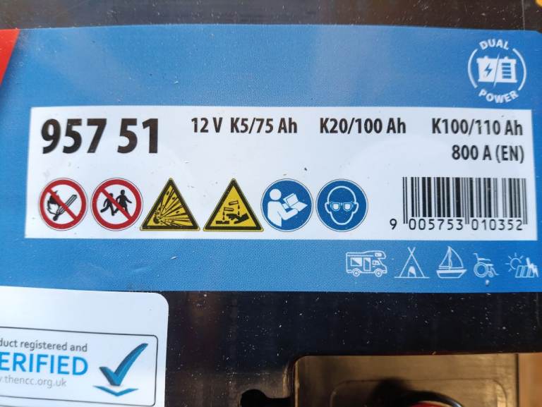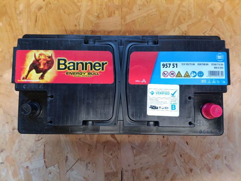 Banner 12v leisure battery used for a few days it's holding a charge of 13 amps , this battery is ok for caravans and motorhomes for occasional of grid that's why I'm selling I spend a lot of time off grid so had to buy a replacement for that reason cost £160 I can post but it does weigh 26kg so that will effect the postage price