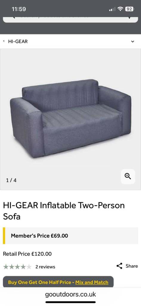 Blow up sofa for camping awning.used 1 season 120 new will sell for 80
