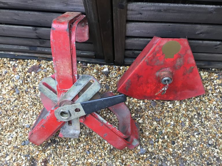 Each of the 3 arms of the clamp has had an extra thickness of metal, shaped and welded to the frame. Can be seen in the photos how these extra plates have been added to double secure the risk of being torched or attacked with an angle grinder. Collection only on this item as it is unbelievably heavy.
