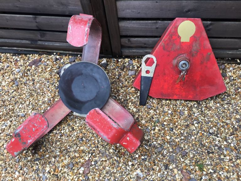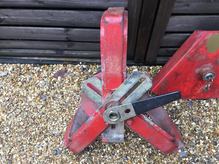 Posting for 11+ yearsBULLDOG WHEEL CLAMP. VERY HEAVY DUTY. EXTRA PLATES WELDED FOR STRENGTH