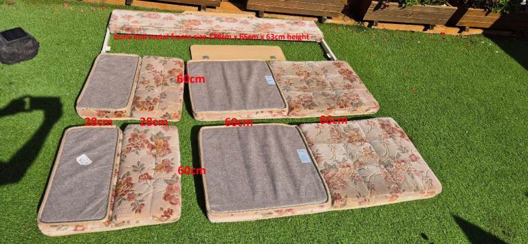 Bottom seats NOT included, included bottom cushions, top cushions and bunk bed with metal frame - all what you can see on picture with dimensions.