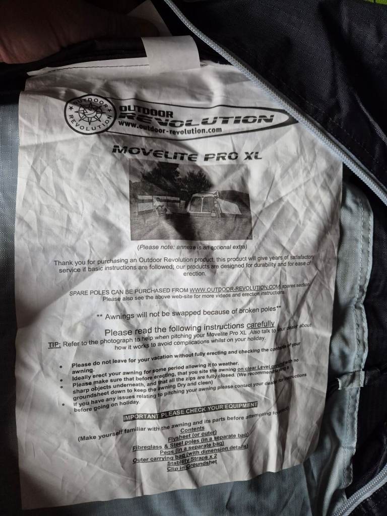 Outdoor Revolution Movelite Pro XL. Only used twice. Includes ground sheet, poles and pegs. Happy for any inspection before purchase. Feel free to ask any questions.