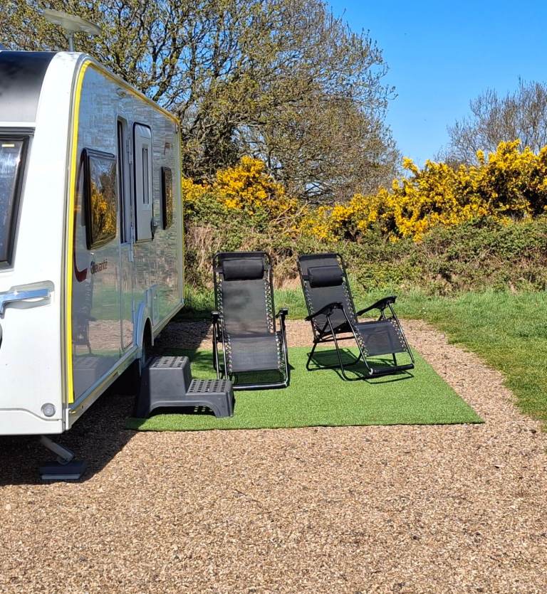 Size 1, grey/charcoal awning with steel adjustable poles. 2.4 metre width. Only used twice,11 months old. Comes with Astroturf ground matting. Excellent condition,as new. Cash on collection.