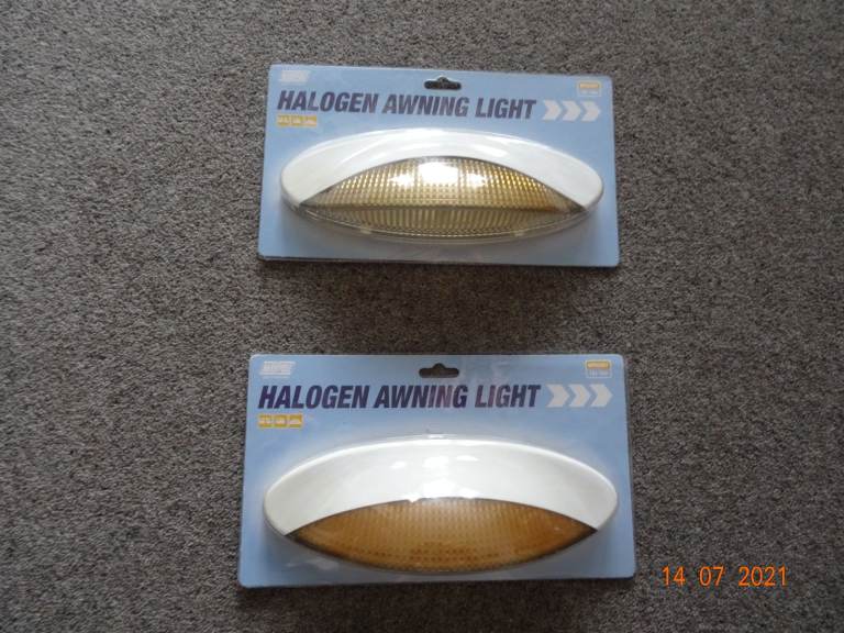 MAYPOLE CARAVAN OR MOTORHOME AWNING LIGHTS BOTH IN GOOD CONDITION WITH HALOGEN BULBS