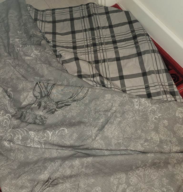 Brand new fitted island bed duvet & pillowcases. Made to order, bottom of duvet is rounded tyo fit island bed. this is why I can't return.made by tuck me under. Excellent quality material.