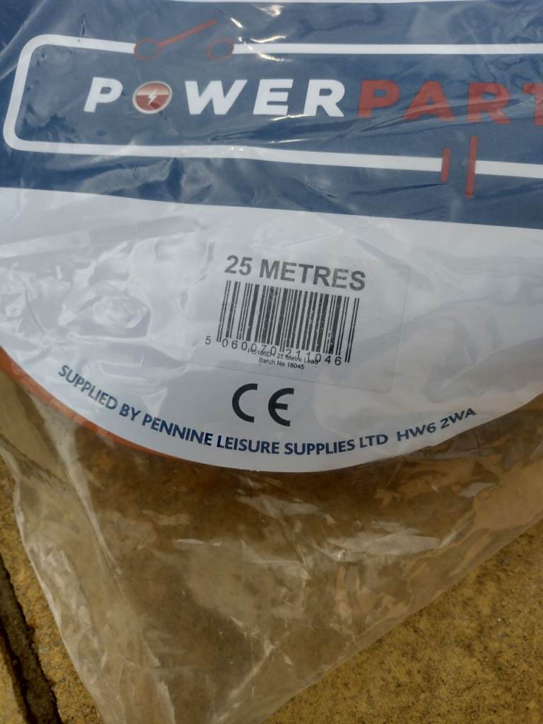 Hi this is a brand new unopened 25M mains cable supplied when changed unit so surplus to requirements.