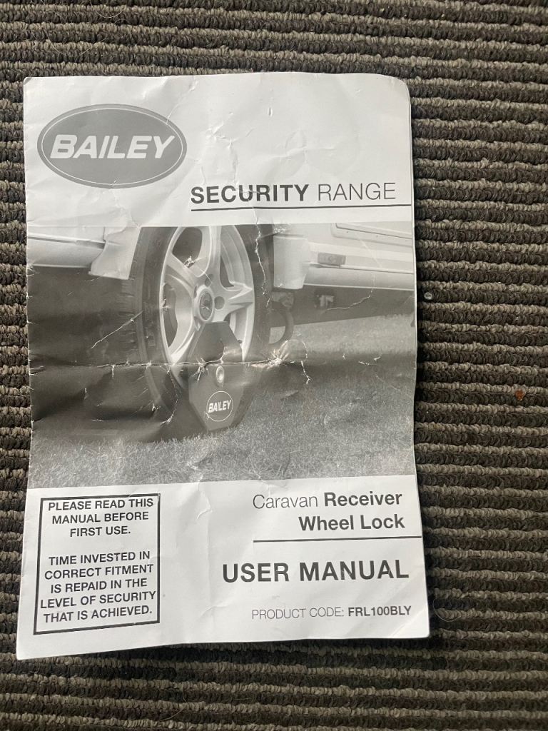 Bailey Security Wheel Lock, complete with bag and instruction manual, hardly used!