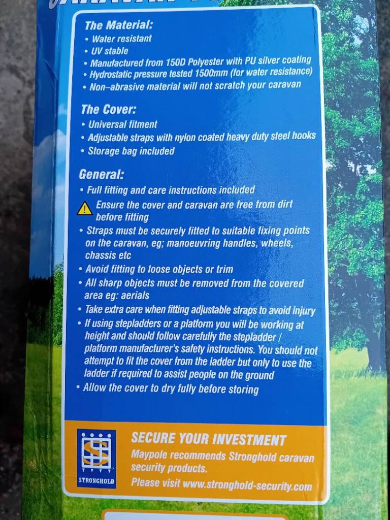 Caravan roof cover. Unused. Still in box. Cost £78 selling for £35. Collection only.