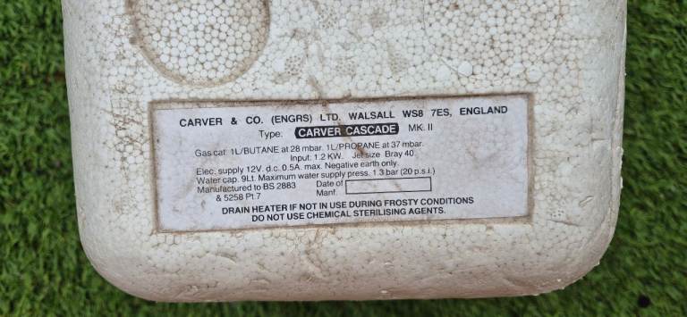CARVER CASCADE 2 gas water heater for camper caravan motorhome boat.