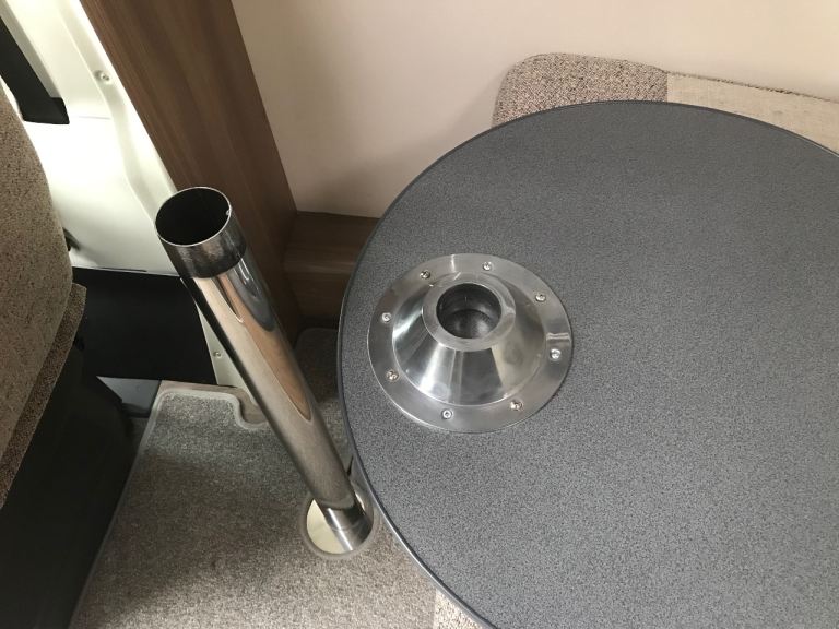 50cm circular table top. Socket for table leg mount on the underside of the table top. Collection only