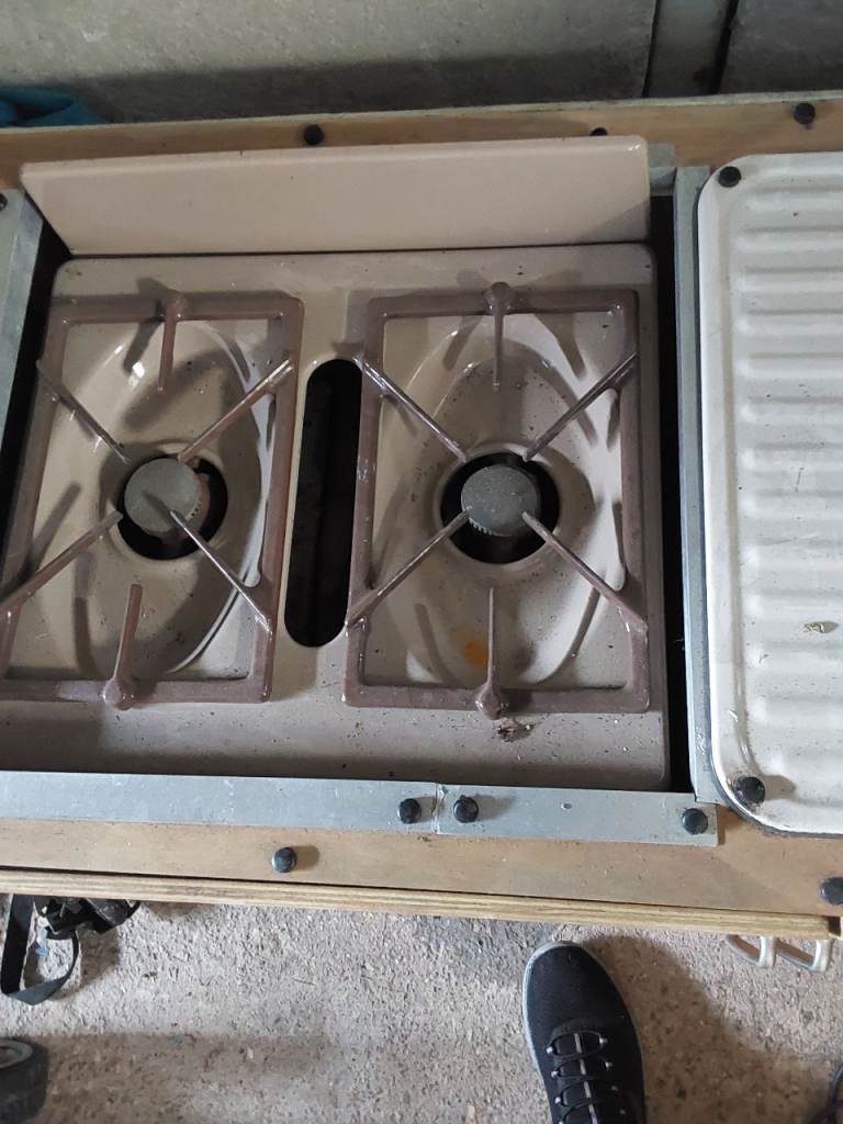 Hi .this is a cast iton cooker out of a volkswagon campervan ive built it into a unit with sink all fitted well .pipes ect come out the back .ideal if your doing convertion or jusy sit it in trailor and use for camping ect