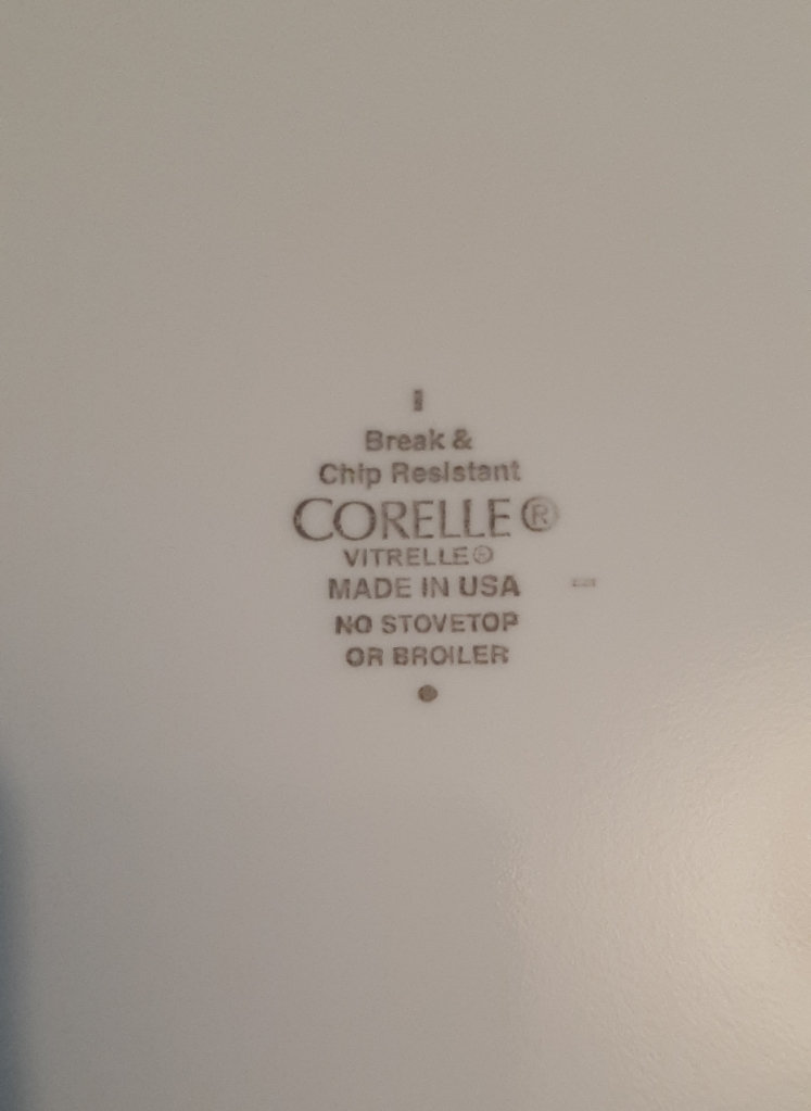 Corelle 12pc dinner set, 4 dinner plates, 4 side plates, 4 bowls. Lightweight, chip and break resistant. As new.