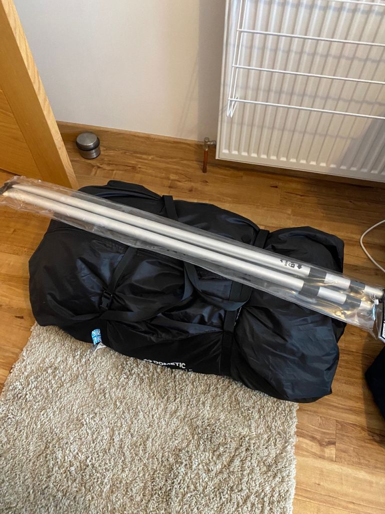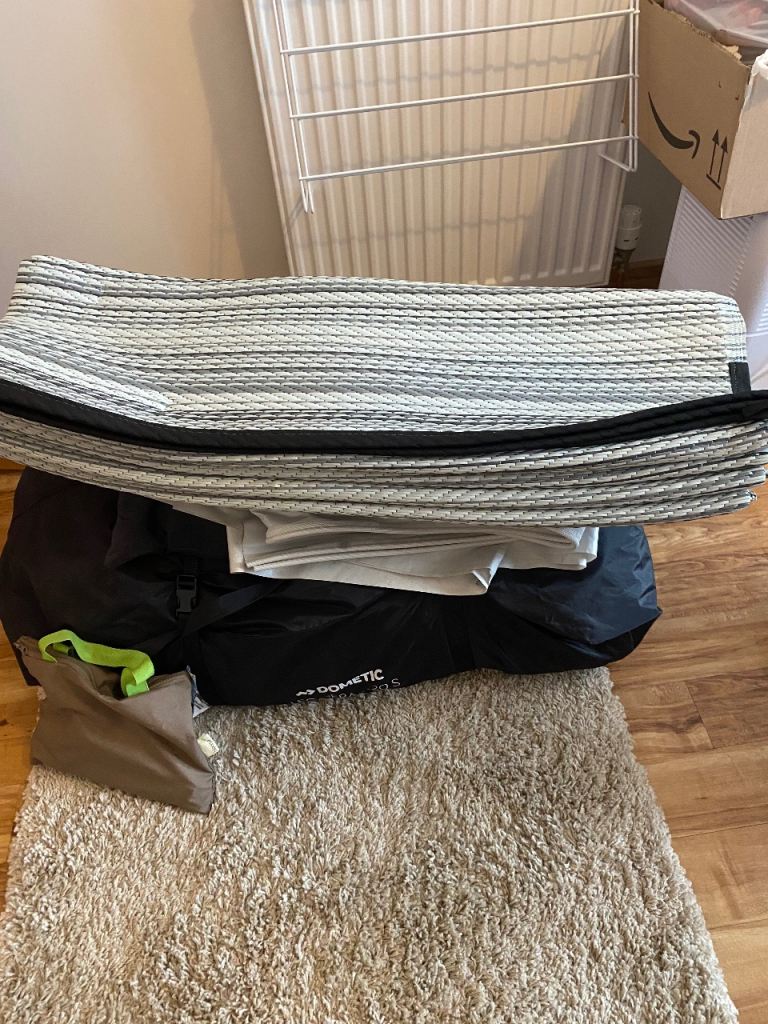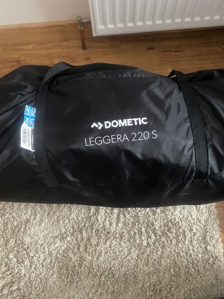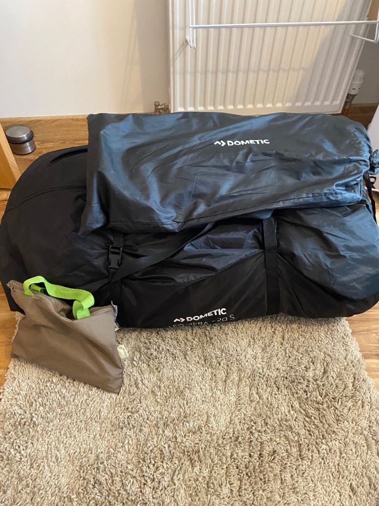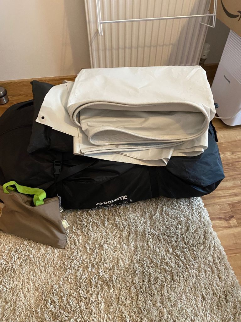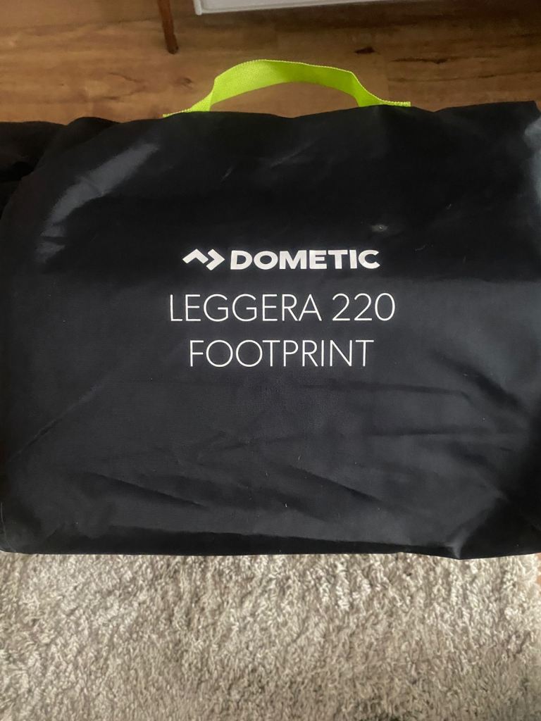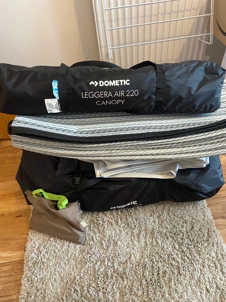 Dometic Leggera Air awning comes with separate canopy, footprint carpet, 2 rear upright poles , pegs, daft skirt and pump. All bagged and in excellent condition.