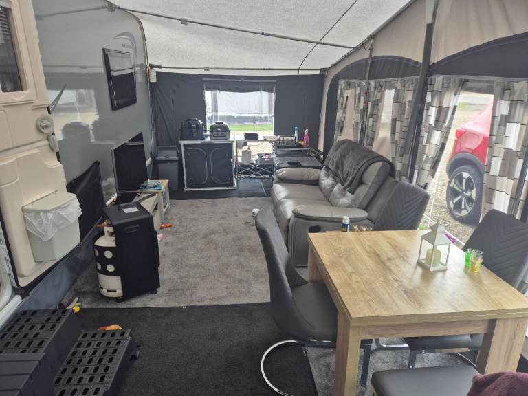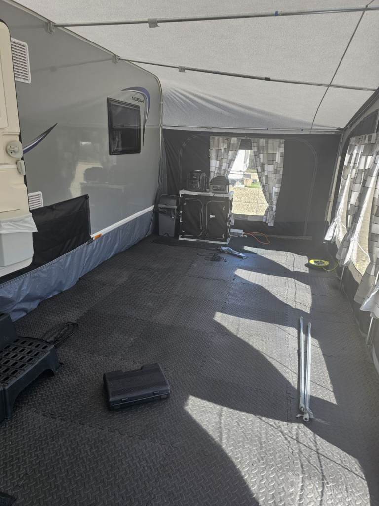 This dorema awning is in good condition it comes with draft skirt and kampa wheel arch cover and limpet zip down blinds