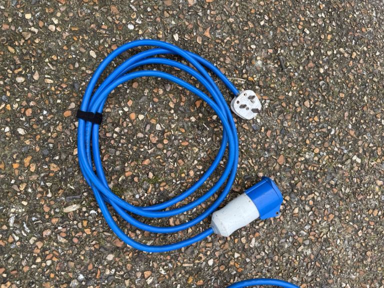 Hook up lead for caravanning/camping. Comes with standard 3 pin plug adapter