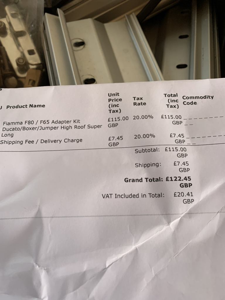 New Fiamma awning bracket F80/F65 adapter kit Ducato/ Boxer/ Jumper high roof super long.