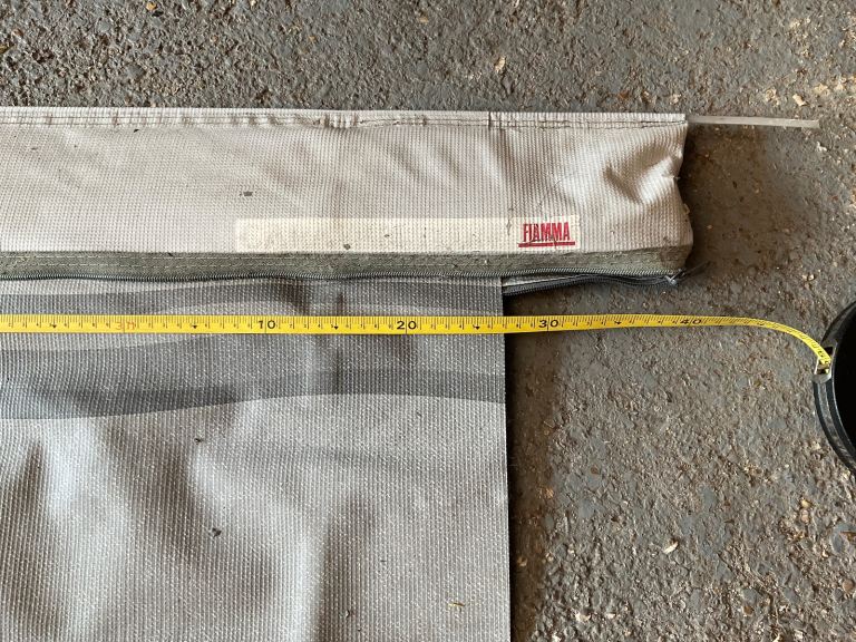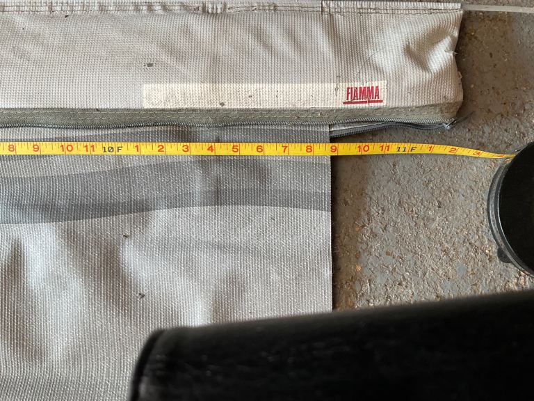 10feet 9 inches wide slides in awning rail quick set up has the exstension 30cm drop on the bar