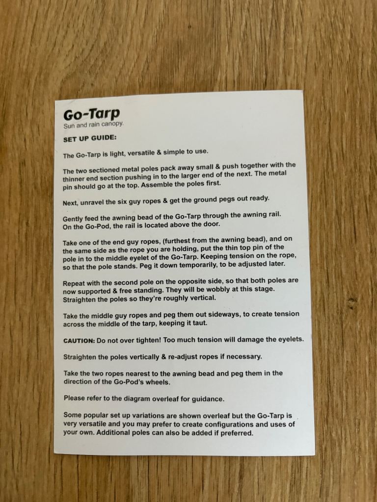 Brand New Go-Tarp Sun & Rain Canopy for Go-Pod Micro Tourer in Olive Green. Never been used and still folded and packed as received from go-pods micro tourers U.K. Cost £149