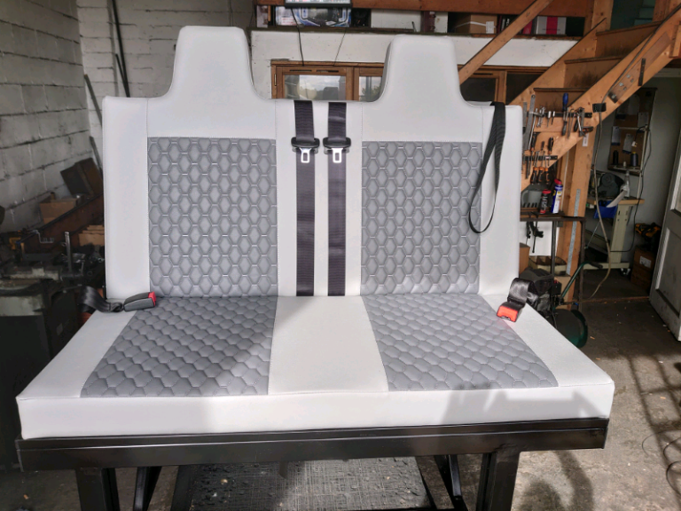 Upholstered with E8 rated quality seatbelts attached and built-in headrests @ £980 each.