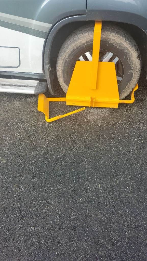 Heavy Duty Wheel Clamp for Motorhome or Van . Adjustable to fit different Wheel sizes and vehicles. Been used on motorhome with 225/75x16 tyres . No longer used due to fitting of Cab Steps
