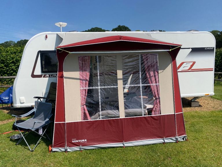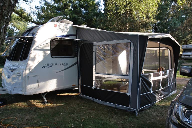 Width - 340cm, Depth - 230cm, Suitable caravan height - 235 to 250 cm, distance between roof poles 313 cm