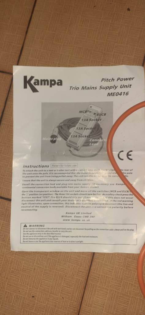 Posting for 14+ yearsKampa Caravan Motorhome Campsite 230V 16A Power Hook Up Lead Mobile Mains Unit