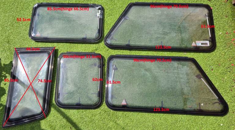 Large selection of caravan windows. Various sizes with various prices.