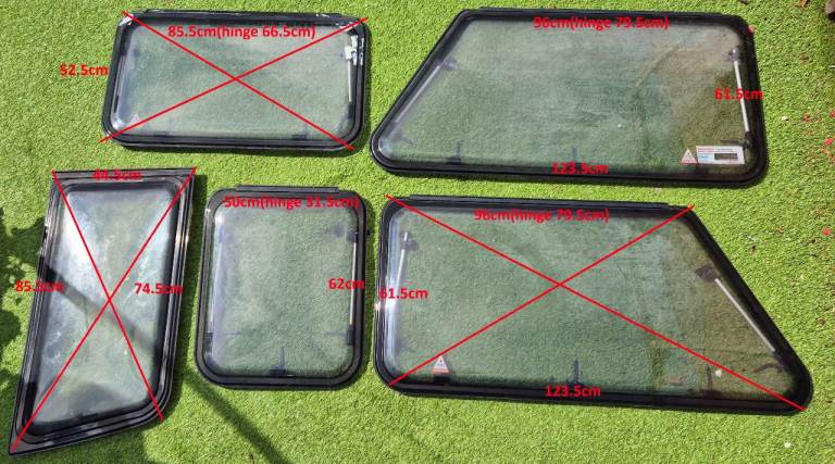 Large selection of caravan windows. Various sizes with various prices.