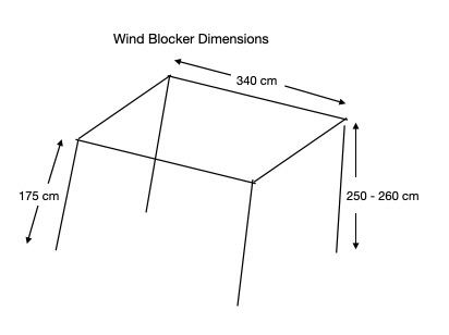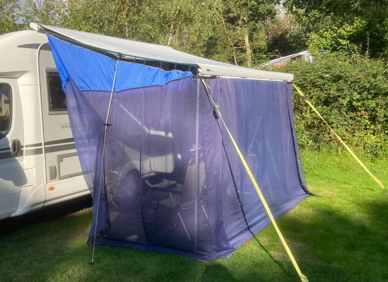 This wind blocker is light weight and forms an enclosed space with draught reduction. Each side and front panel can be erected separately or all together to provide a wind break or fully enclosed area at the side of the motorhome.